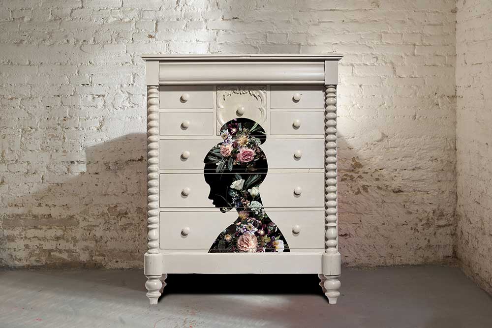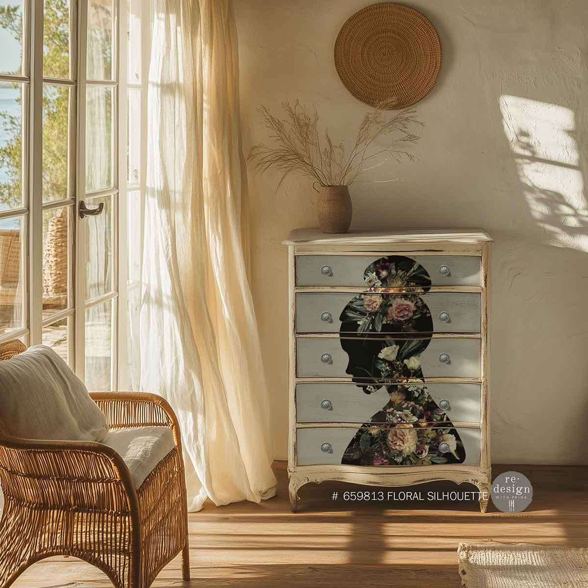 A estampa Silhueta Floral traz sobreposições florais delicadas combinadas com a silhueta de uma mulher negra, resultando em um visual elegante, marcante e cheio de sentimento. As flores não são aleatórias. Elas seguem uma curva que conta uma história, quase como se uma brisa tivesse acabado de passar. Você pode aplicá-la em paredes, armários, móveis de madeira, em qualquer lugar que precise de um toque sutil de estilo.