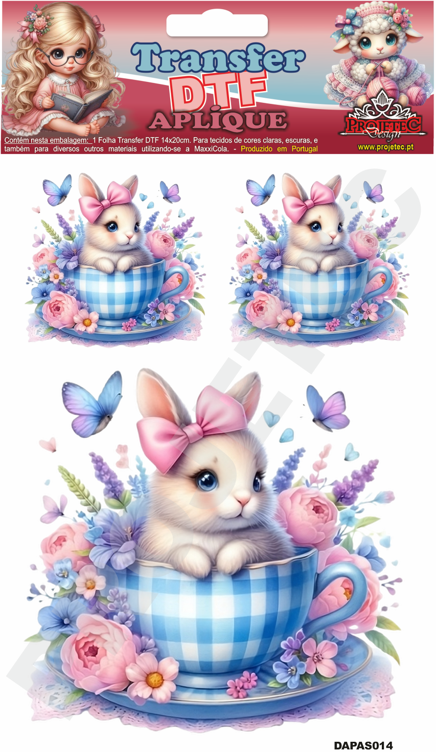 Transfer DTF, é uma nova tecnologia de transferência de imagem para tecidos de qualquer tipo e cor, e agora também pode ser utilizado e retirado à frio, com a MaxxiCola e impermeabilizado com o Verniz VitraLux, ambos da Projetec Design. Pode também ser utilizado em madeira, MDF Cru ou lacado de qualquer cor. Transferência rápida por calor, com a utilização de ferro de engomar ou prensa térmica. Rápida transferência sem a necessidade de acabamentos posteriores.