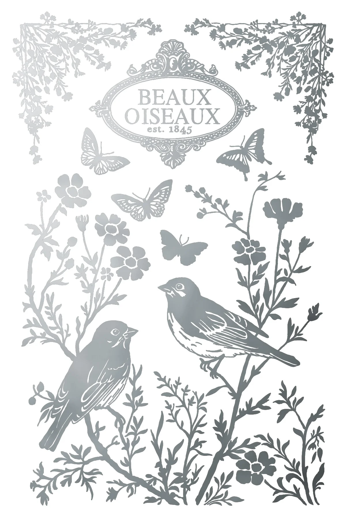 Apresentamos o Papillon – Bloco de Transferência Dourado de 8 Páginas (20,3 x 30,5 cm) – uma sofisticada homenagem a obras de arte vintage com um acabamento em uma mistura brilhante de ouro e prata. Esta coleção inspira-se em materiais efêmeros de editoras do século XIX, incluindo logotipos de ex-libris, motivos ornamentados, rótulos, tipografia e uma encantadora série de ilustrações de gaiolas de pássaros. A combinação de imagens mescla detalhes refinados e um toque lúdico, tudo elevado pelo acabamento metálico.