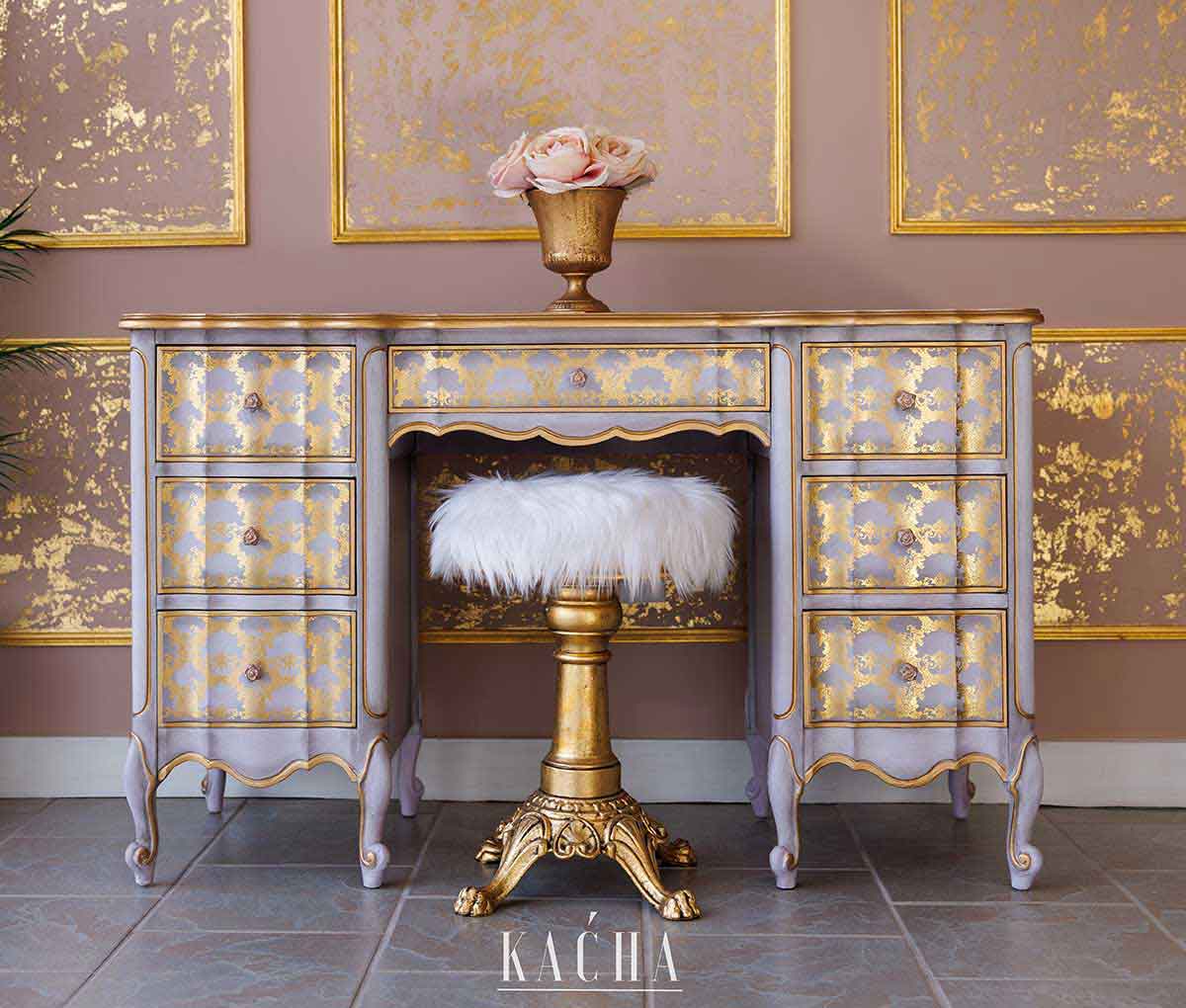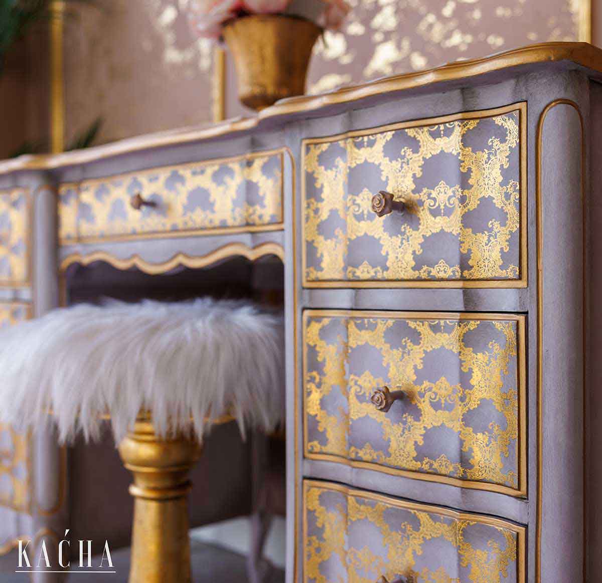 Dê um toque de requinte aos seus móveis com o Golden Lacework, a interpretação primorosa da Kácha de detalhes intrincados. O padrão dourado ornamentado imita a delicadeza da renda, trazendo um luxo discreto para cômodas, armários e muito mais. Este design Middy Foil Transfer combina facilmente com tons de joias vibrantes ou paletas suaves e neutras, criando um visual clássico e contemporâneo ao mesmo tempo.