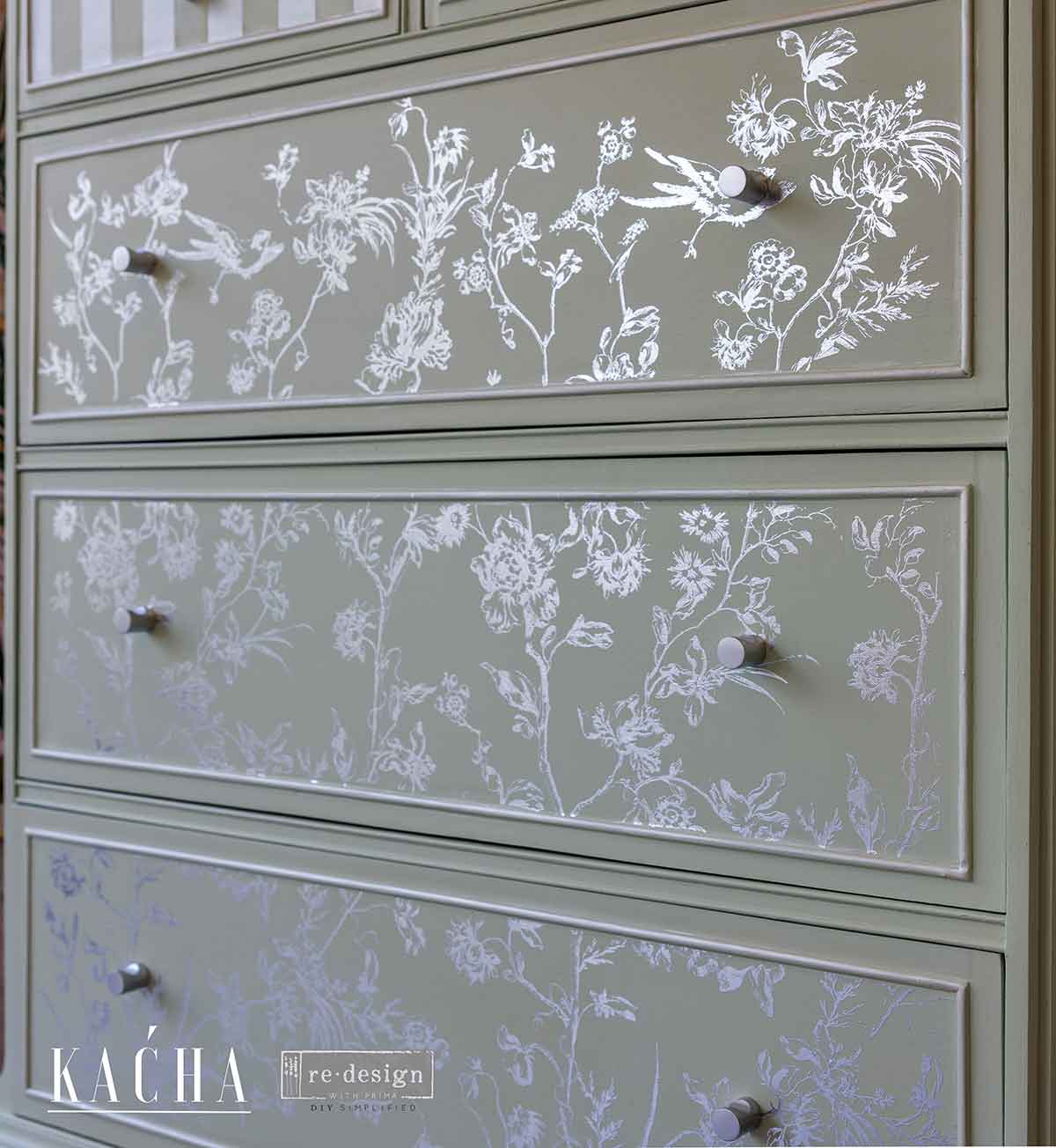 Eleve a elegância dos seus móveis a um novo patamar com o Transfer Decorativo “Pássaro Prateado”®. Com o toque de glamour característico da Kacha, este transfer apresenta graciosos pássaros pousados ​​em delicados galhos, todos em uma deslumbrante folha prateada que adiciona um toque luxuoso e reflexivo às suas peças. Os detalhes intrincados das flores e dos pássaros exalam sofisticação, tornando-o perfeito para quem busca infundir sua decoração com um toque de beleza refinada. Seja para transformar uma cômoda vintage ou adicionar charme a uma peça moderna, “Pássaro Prateado” traz um toque de elegância atemporal que deslumbra a cada olhar.